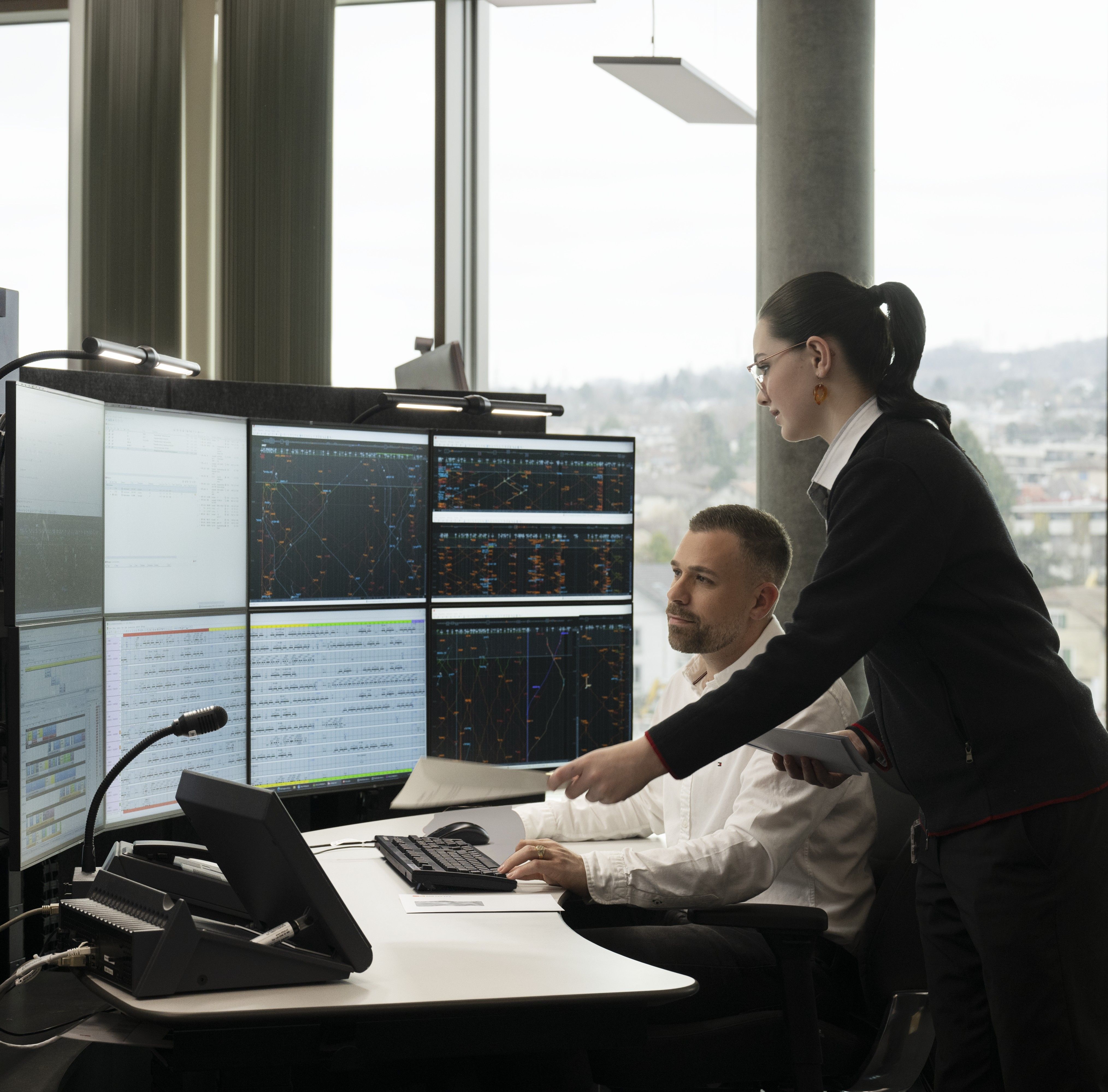 Das Traffic Control Center ist der zentrale Ort für die Steuerung des Personenverkehrs der SBB. Die Leitstelle Bahnverkehr Schweiz (LBS) ist verantwortlich für die Gesamtleistung aller SBB-Leitstellen.